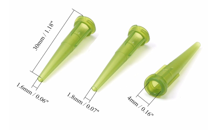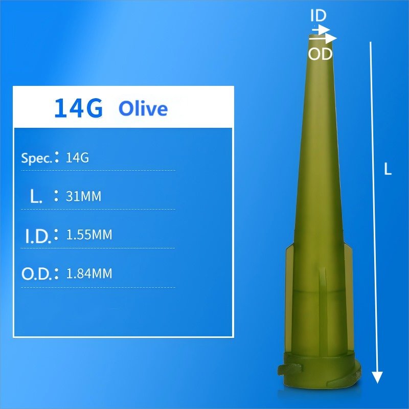 Conical nozzle types 14G,18G, 20G, 22G, 25G, 27G.