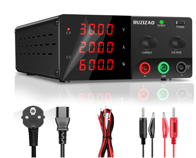 - Stable output, auto switch C.C/C.V mode: the laboratory power supply 30V 20A is a professional power supply regulator that has a high resolution of 0.01V and 0.001A, which can work under full load for long periods of time. The constant voltage and constant current mode can be switched automatically. The backlit 4-digit LED display provides a more accurate display of voltage and current value, which is clearly visible even in low light conditions