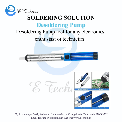 A desoldering pump is an essential tool for any electronics enthusiast or technician, designed to quickly and efficiently remove solder from circuit boards during repairs or component replacements. Featuring a spring-loaded plunger and a heat-resistant nozzle, it works by creating a powerful vacuum that sucks up melted solder in one swift motion. Ideal for beginners and professionals alike, this lightweight and portable device ensures precision, reduces mess, and minimizes damage to delicate components. Whether you’re reworking a PCB or salvaging parts, a desoldering pump is a reliable, must-have tool for clean, controlled, and effective solder removal every time.
