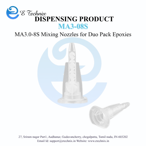 (Ex- GST) + Delivery ChargesThese mixer nozzles are suitable for 1:1 and 2:1 ratio two-component materials only. They have white elements and are constructed of high grade polypropylene. All items are industrial grade safe and silicone free. 3.0mm ID x 8 mixing elements.
