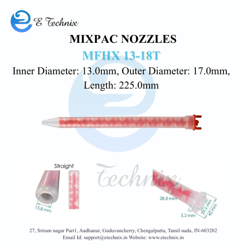 (Ex- GST) + Delivery ChargesMixpac nozzles, manufactured by Sulzer Mixpac (now part of Medmix), are static mixing nozzles designed to combine two or more fluid components—typically adhesives, sealants, or resins—without requiring external energy. They rely on internal geometry to create turbulence and ensure thorough mixing.