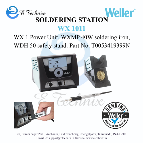 (Ex- GST) + Delivery ChargesThe Weller WX 1011 Soldering Station combines elegant design with solid performance and an intuitive user interface.