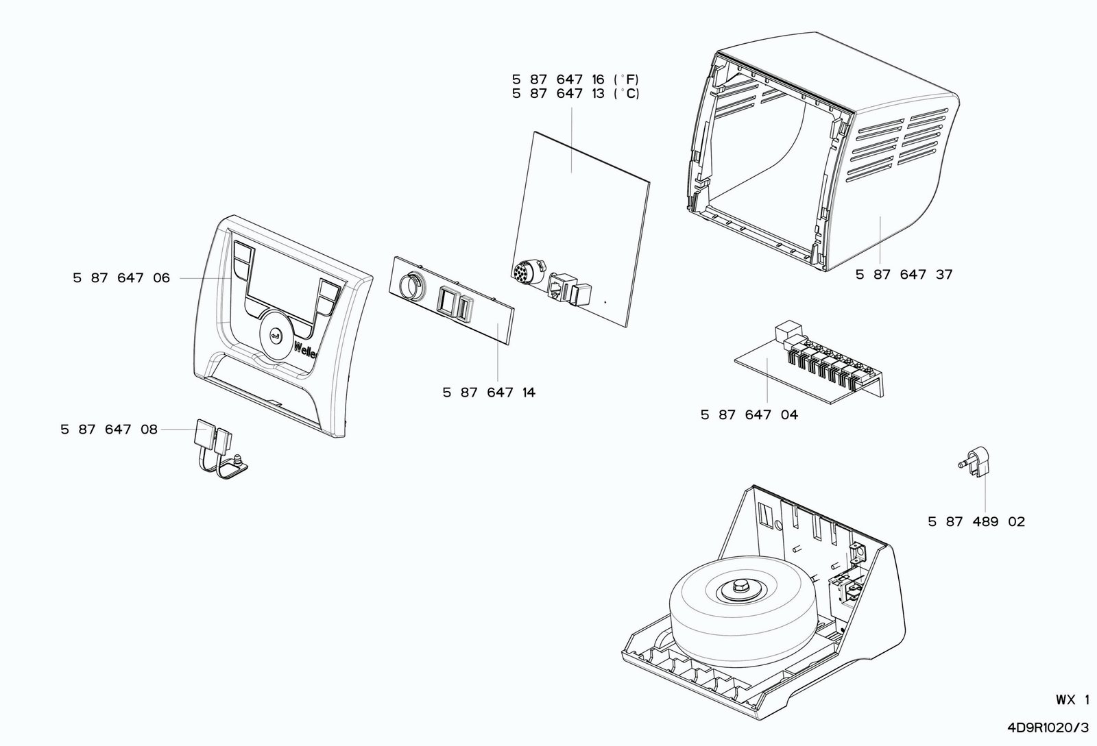 The station consists of a WX 1 single outlet power supply unit a WXMP 40W soldering iron and a WDH 50 safety stand.